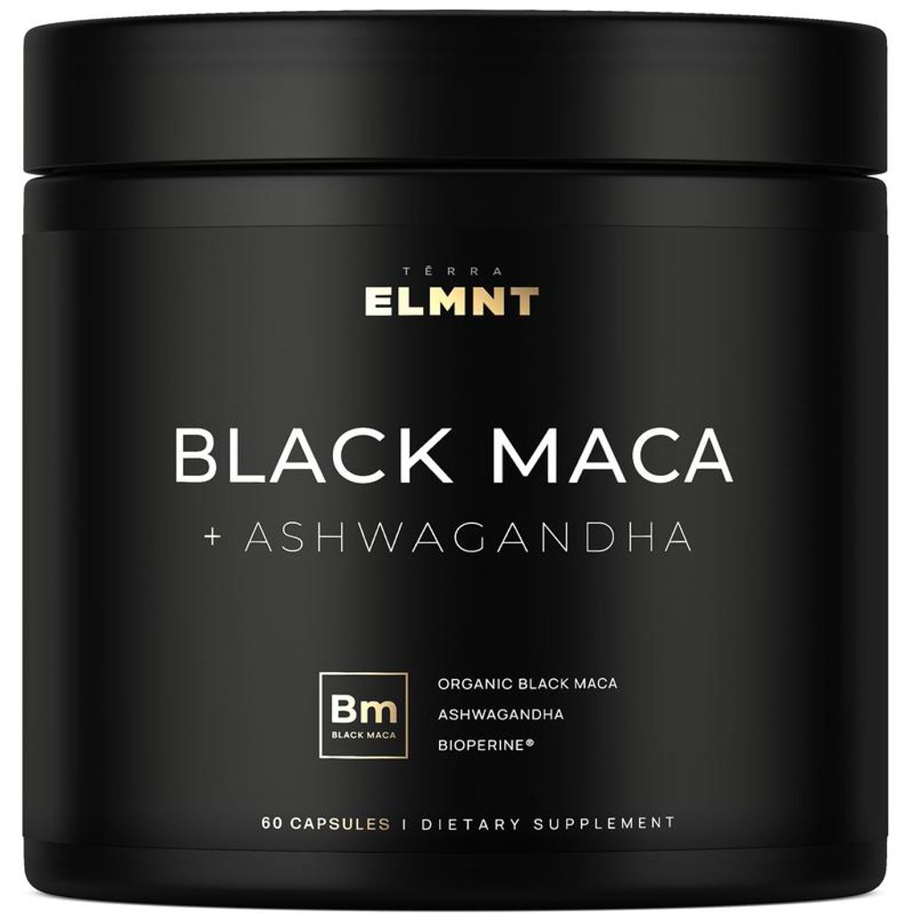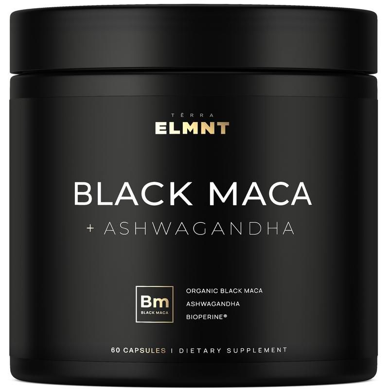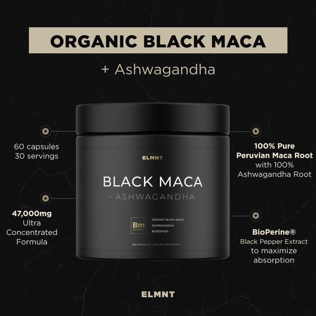 ELMNT 40x Strength Organic Black Maca Root w. Ashwagandha - High Potency Black Maca Root Capsules for Men. 100% Pure Maca Powder. Exercise support