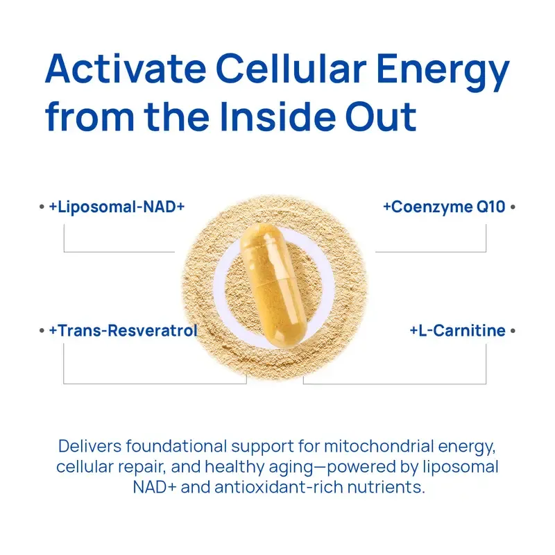 ·NAD Supplement for Cellular Energy: This advanced NAD supplement for men features liposomal NAD+, CoQ10 and L-Carnitine to fuel cellular energy and support healthy aging. Enhanced with trans-resveratrol, this NAD resveratrol supplement also provides antioxidant support to help reduce fatigue and promote long-term wellness.